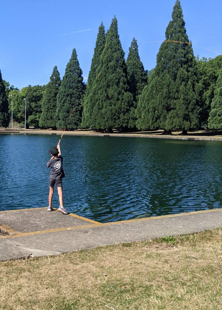 My 8-year old grandson, Weston, enjoyed practicing fly casting at the FCO August picnic at the Westmoreland casting ponds. After that experience he said