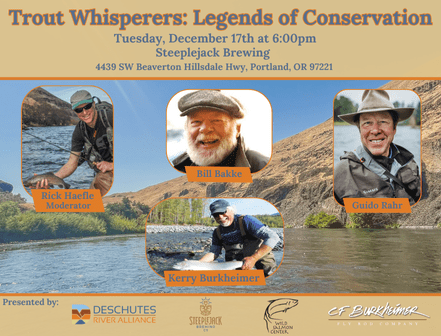 Deschutes River Alliances bring us the Trout Whisperers expert panel series. Back home at Steeplejack Pizza & Beer. This special edition features local legends of the conversation world. Visit their website for event details.