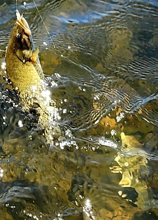I carefully made my way down the primitive roadway, holding my breath around the hairpin turns, until I reached the parking area. I rigged up a 4-weight rod with a floating line and a pair of chartreuse and white woolly buggers about 24” apart from each other and headed downstream for some wet wading. It was my first time chasing smallies this year, so I had to remind myself to avoid the “trout” water and look for slower stretches.