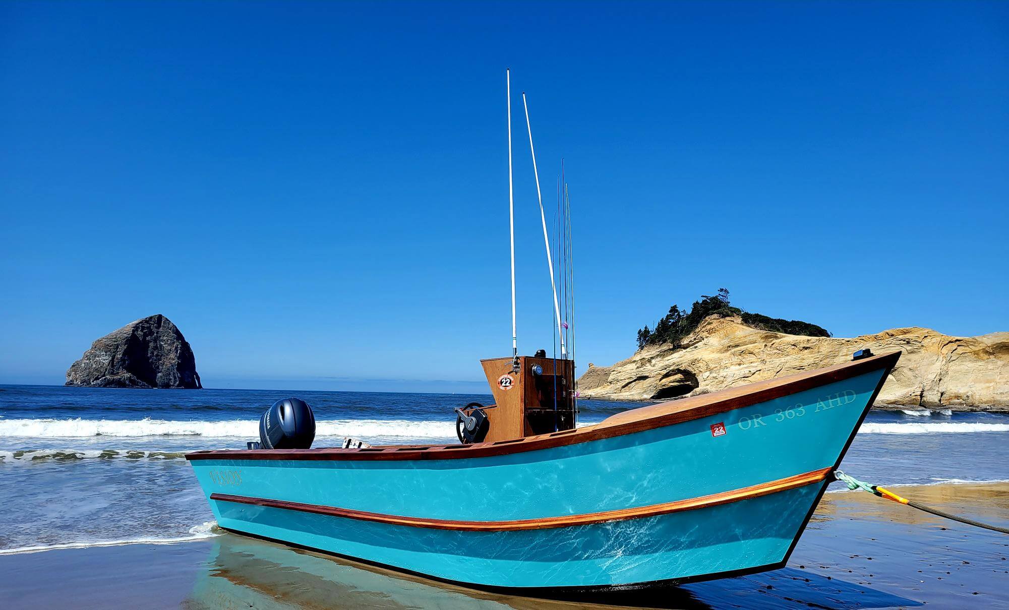 Club President Mike Radakovich and I drove out to Pacific City in mid-July for an exceptionally fun day of dory fishing for Coho salmon and rock fish on fly rods. We took a trip with Rob Perkin of Connect Outfitters, who presented to the Club in March, and had a great day. Dory boats are flat bottomed and launch directly from the beach. We put in shortly after 6:30 a.m. and motored about a mile past Haystack Rock off Cape Kiwanda and began targeting Coho salmon by trolling bucktail flies on 8-weight rods in the prop wash about 30 feet behind the boat. Mike and I each fished a sink tip which put the fly about 5 feet below the surface. Rob also put a rod in the stern with a floating line so that we could see the pink bucktail bobbing on the surface between our sink tips.
