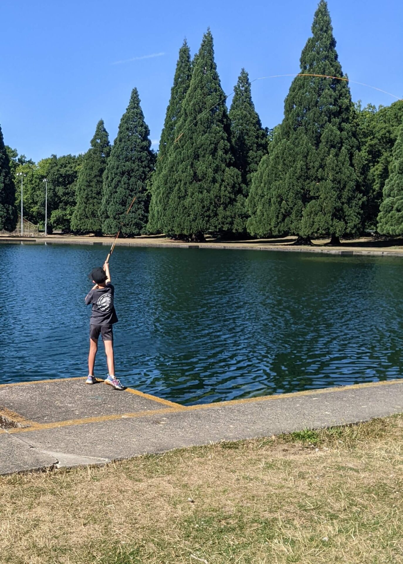 Matt started out hooking a few trout and a nice-sized white fish. At first Weston was handed the rod after we hooked a fish. He had a great time fighting each trout as he learned how to maneuver the fish so Clay could net it. After watching Matt and I hook several fish, Weston wanted to try casting the flies himself and setting the hook when the indicator fly submerged. With Clay’s gentle coaching on placement of the flies, when to mend the line and how to set the hook by jerking the rod over the bow of the boat, Weston soon got the knack of how to do this hopper/dropper approach to fly fishing.