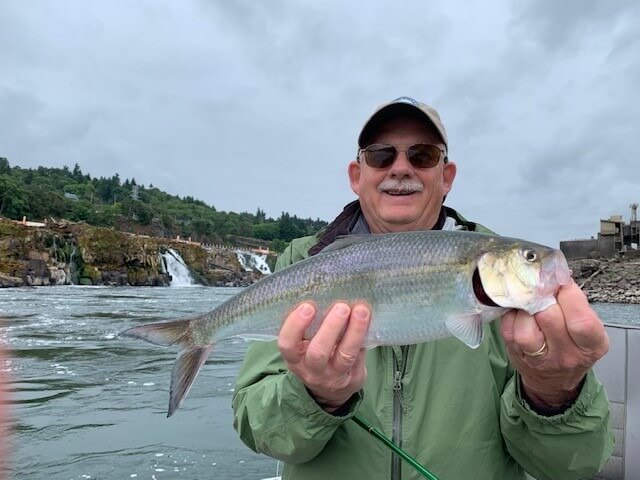 The Columbia Basin hosts one of the largest Shad runs in the world. This anadromous fish moves up both the Columbia and the Willamette to free spawn every year in June. So far this year over 6.8 million have crossed Bonneville Dam and the run up the Willamette is estimated at 15% – 20% of that size. Shad average 1 – 5 pounds and fight like much larger fish. The take can be very gentle, just a slowing of the fly, or a hard pull just before a rocketing run.