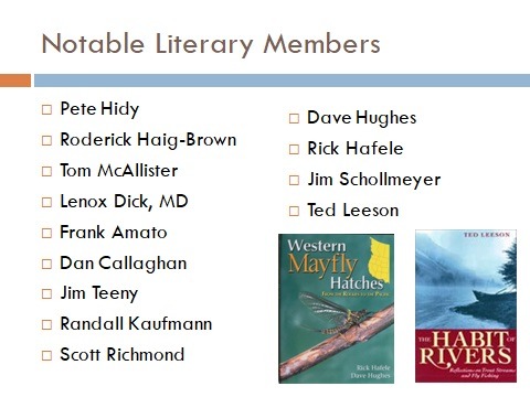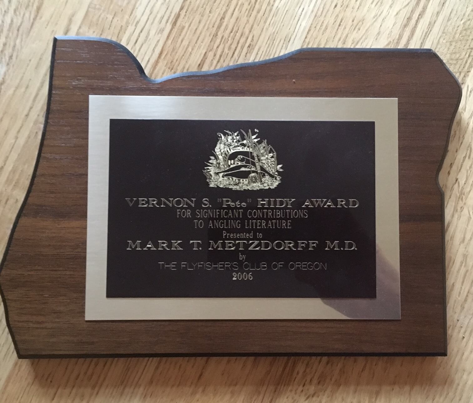 It also periodically bestows the “Vernon S. ‘Pete’ Hidy Award” (Figure 11) for individuals deemed to have made significant contributions to the literature of angling; among those are club members Dave Hughes, Jim Schollmeyer and Ted Leeson.
