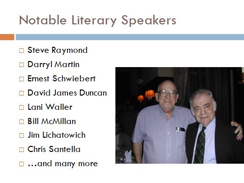 Apart from authors featured in Club publications, many literary notables have been speakers at the Club’s monthly meetings, often at the annual “Couple’s Night” as was Ernest Schwiebert in 2004, seen in Figure 12 with fellow author and Club member Dan Callaghan.