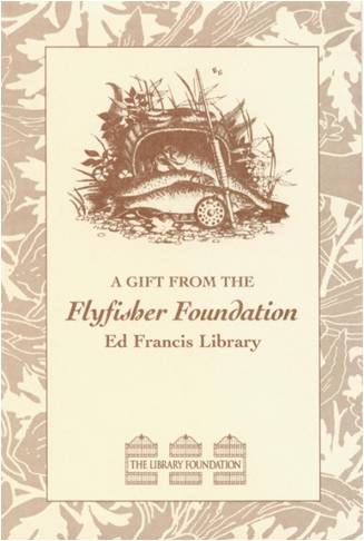 The Flyfisher Foundation, established by the Club in 1973, was created to be a steward to the Club’s assets, both monetary and other. A major part of these assets was the Club’s library, which accrued hundreds of volumes beginning with a donation of more than 600 titles by member Thomas C. Young in 1973. Along with the library, art works and memorabilia, the Foundation also oversaw a cash corpus, which was directed at a hoped-for acquisition of a clubhouse property. By the year 2000 it was apparent that this goal would not likely be achieved, and the Foundation elected to convert to a more community-focused approach, by liquidating some assets, and conveying the bulk of the library to the Multnomah County Library. The most rare and valuable books are now located in the Wilson Room as the “C. Edwin Francis Collection of The Flyfisher’s Club of Oregon,” and are available by appointment for public viewing or scholarship. Francis was the Club’s first and perhaps only librarian. Other books were delegated to the library’s general circulation, each with a book plate indicating their origin from the Club (Figure 13).