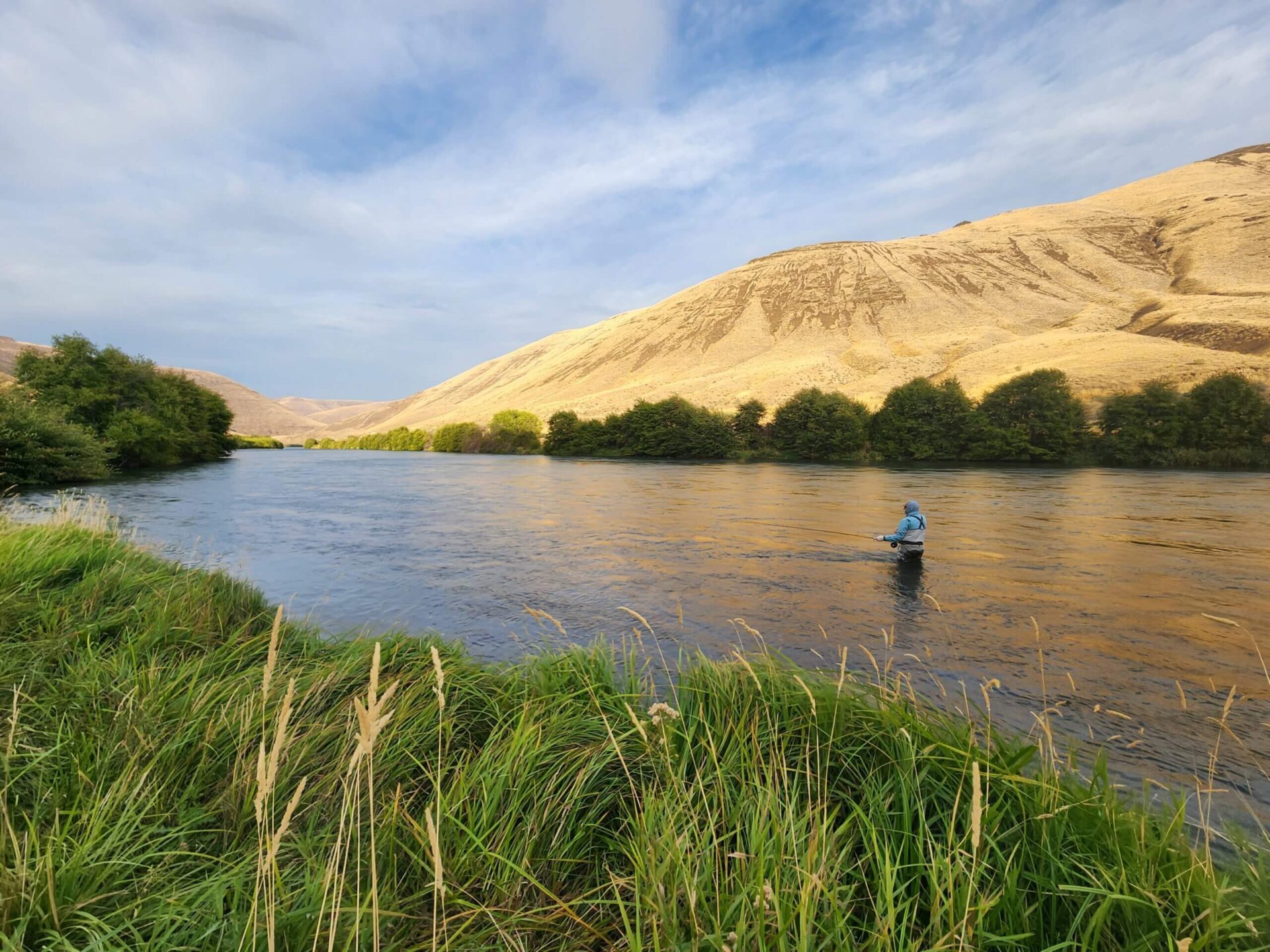Yes, the above photo of the lower Deschutes in mid-October is artful if not enticing. So the story goes that fishing buddies, Jim Hillas and Rick Pay, booked a trip with Deschutes guide extraordinaire Brian Silvey in October. I believe Rick was the photographer but Jim had his line in the water at the right time. Close to the end of the trip in an undisclosed location above Mack’s Canyon takeout, Jim was treated to the spectacular fish below. Congrats Jim and thanks for reminding your editor to post the pics! Readers, you can send yours with a brief description to the Flyline Editor so we can all be jealous!