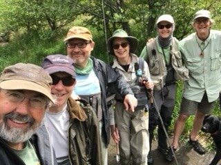 Six enthusiastic trout fishermen set sail for an undisclosed camp on the Lower Deschutes for exploration and adventure. FCO members Jerry Brown, Lisa Hansen, Mark Metzdorff, and Robert Sheley were joined by friends Karl Konecny and Sue Safford in early May as a smattering of golden stones began to climb out of the river.