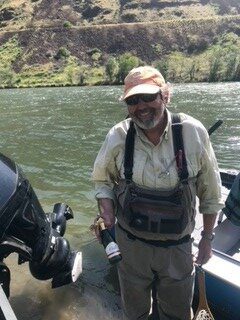 Club members Jeff Malzam and I fished with Jim Baldwin on the Warm Springs Reservation in late May guided by two of Matt Mendes’s guides, Joe Logan and Frank Day, who help during the short salmonfly season. We floated within the Reservation boundaries from just below Trout creek rapids to Whisky Dick.  Al Bagley helped out with the shuttle and visited with his old clients. Jim and his crew fished two days – one in the boats and one in the truck. I joined them for the boat trip. We were fortunate to pick two of the warm days after a stretch of cool ones that kept the salmonflies hunkered down in the bushes. They were looking up the day we drifted. We had on top action at most stops using a variety of dry stone imitations. Norm Woods Salmonfly and a Norm Chubby Lady were my go to flies while Jim was using his bow and arrow cast with his renowned Tied Down Salmonfly under the trees ( which he has been using for at least 25 years). 3x tippet was in order to tame these wild fish. When things died down near the end of the day we switched to a euro rig in the last hole before the takeout and hooked 3 fish in 4 casts managing to land two of them using Pat’s Rubber Legs as the heavy point fly and Nick’s Fat Caddass on the weighted dropper. The River brought old friends together and cooperated with some nice catching.