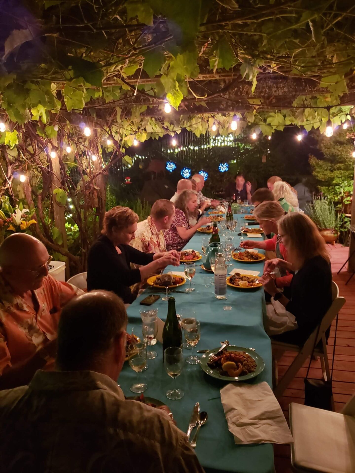 Twelve guests and three hosts celebrated well into the Fall evening under the grape arbor, surrounded by lights, wine and great company.