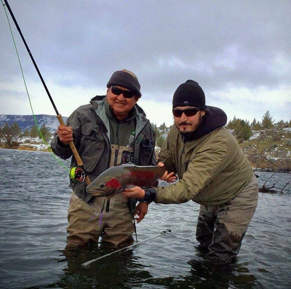The Treaty of 1855 (“Treaty of Wasco, Columbia River, Oregon Territory with the Taih, Wyam, Tenino, & Dock-Spus Bands of the Walla-Walla, and the Dalles, Ki-Gal-Twal-La, and the Dog River Bands of the Wasco”) between local Columbia river indigenous people and the U. S. Government defined the boundaries of the Warm Springs Reservation, and the fishing rights of the indigenous people both on the reservation and in nearby traditional fishing sites. It took until 1996 for an industrious member of the Confederated Tribes of Warm Springs to found a guiding service giving non-native clients access to the amazing fishing on the Reservation (western)  side of the Deschutes River below Warm Springs. Al Bagley, born in Sweet Home, had worked in the lumber mill (and fished the river) for years when he conceived of his guiding service; and everyone’s life took a turn for the better. Al called his outfit RiverBend Guide Service, and quickly developed a superb program and a large client list. He initially started with trout and expanded into summer steelhead as his business developed. Later in his 20-year tenure he introduced his grandson Matt Mendes to the business as a shuttle driver, and since 2016 the roles have reversed with Matt helming the re-named Spin The Handle guide service, and grandfather Al driving shuttles. It remains one of the best non-secrets in Oregon fly fishing.